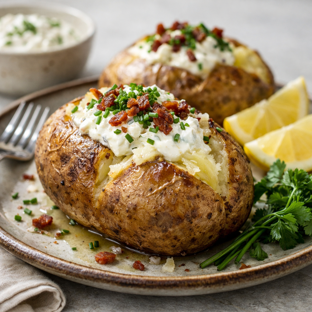 Klassiske danske bagekartofler med sprød skal og blød, luftig midte. Perfekt som tilbehør eller som hovedret med fyld.